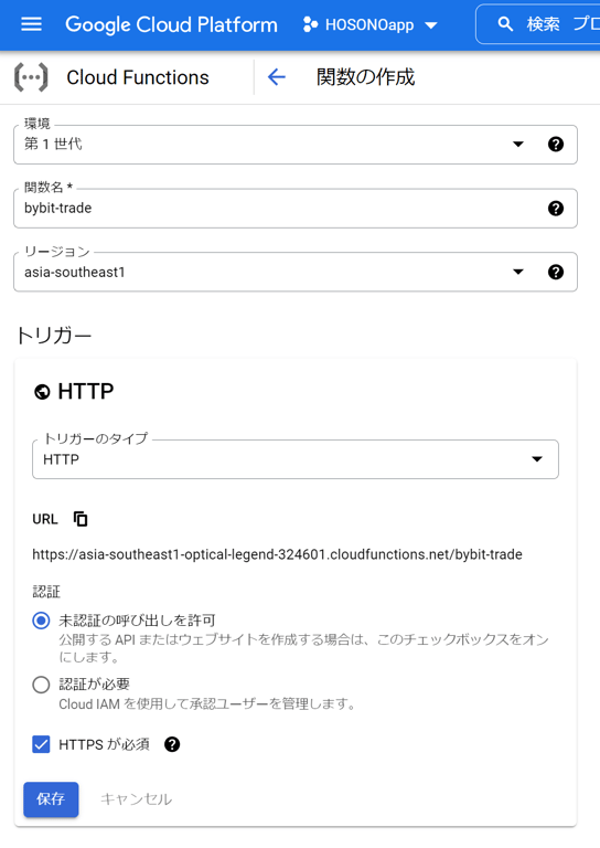 未認証の呼び出しを許可すると外部からのアクセスを許可できます。