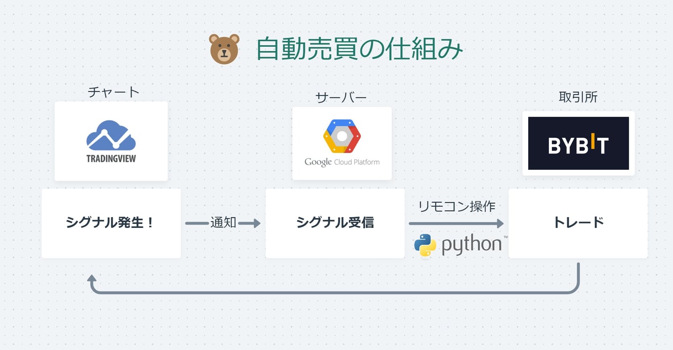 Python、TradingView、Google Cloud Platformを組み合わせた仮想通貨自動売買BOTの作成方法を解説します。